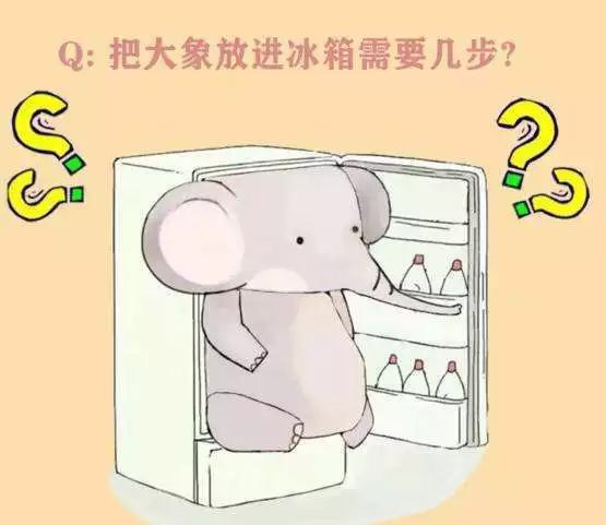 1.把冰箱打開——2.把大象裝進去——3.關上冰箱