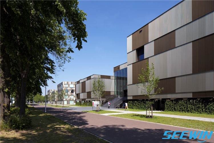 學校簡介:Ezinge 教育園區坐落于荷蘭Meppel,毗鄰Ezinge住宅區,介于鐵路和幾塊運動場之間。古銅色的條狀建筑群為五所中學和一座運動綜合體。盡管不同學校的教室和空間功能相互獨立,但位于中央的共享工作坊將它們相互連接。會客教室在公園里的平臺前,可以從遠處眺望有劇院和舞廳的多層主樓,及音樂和美術教室。SEEWIN詩敏家具將帶您體驗這座教育園區的公共休閑家具
