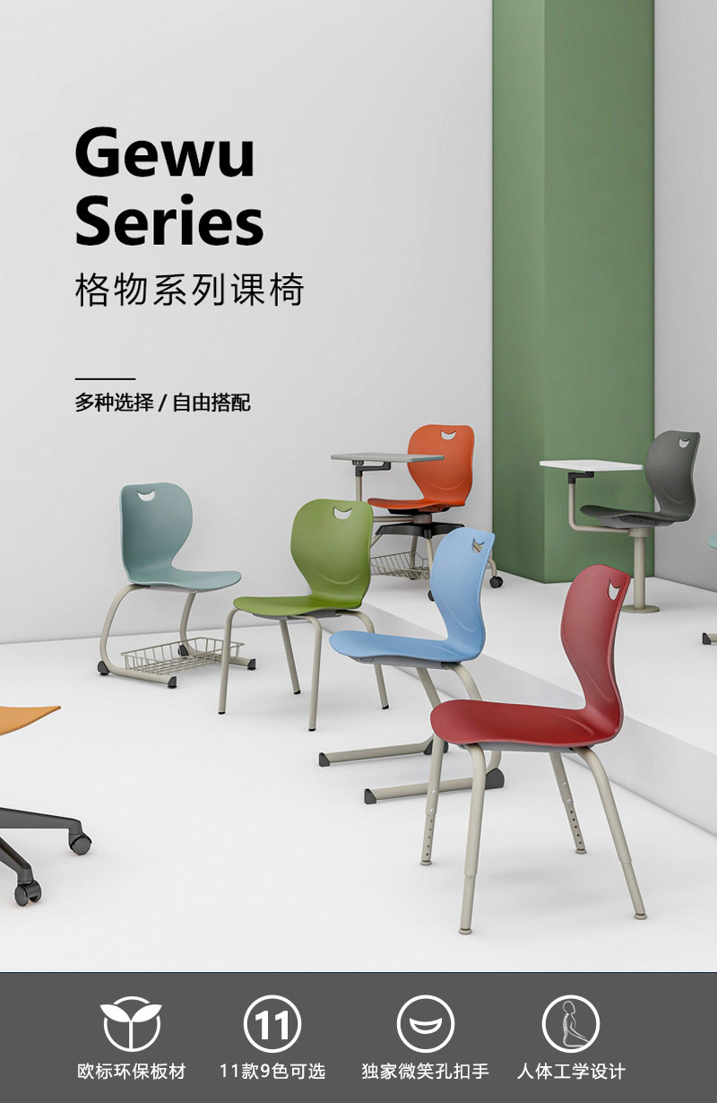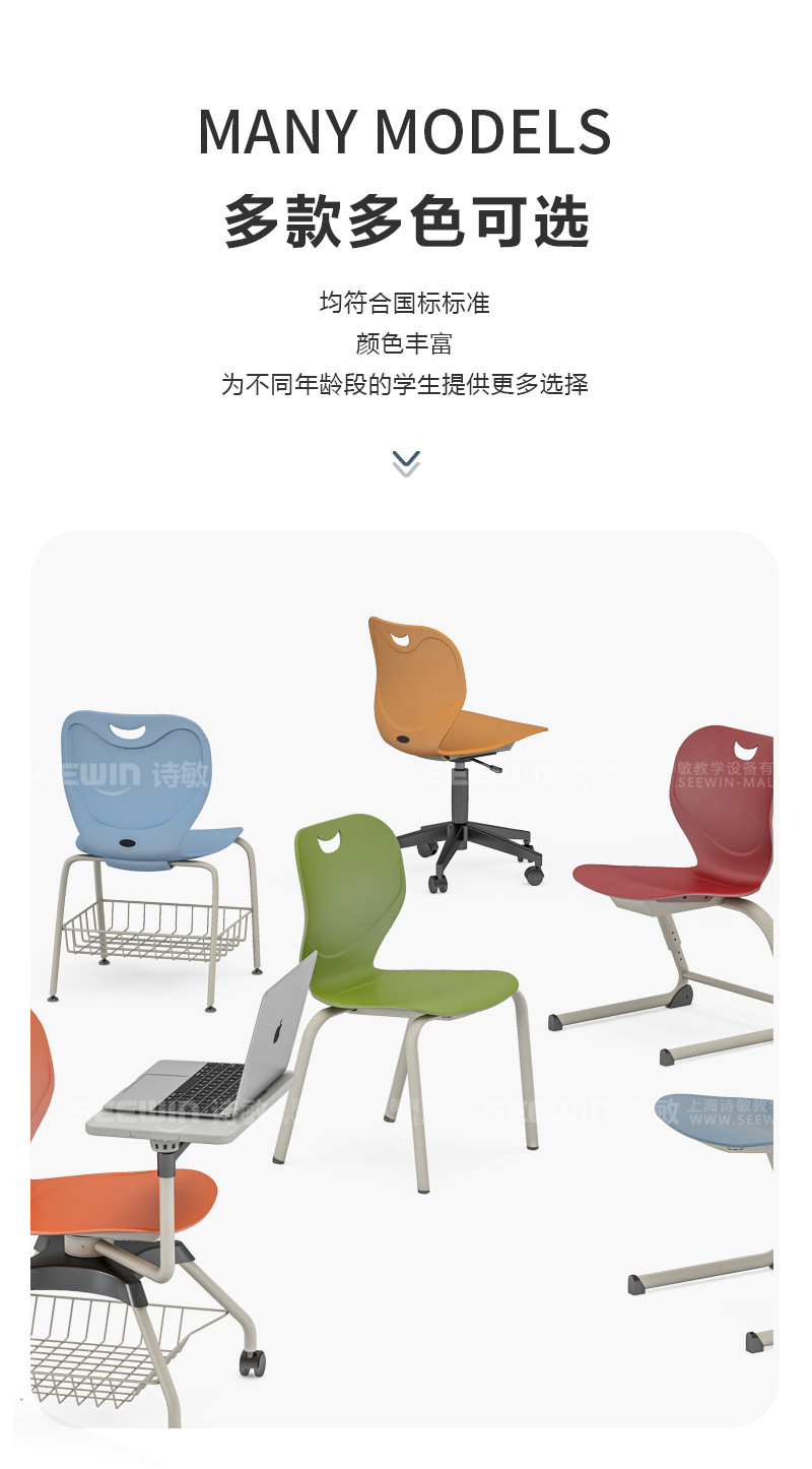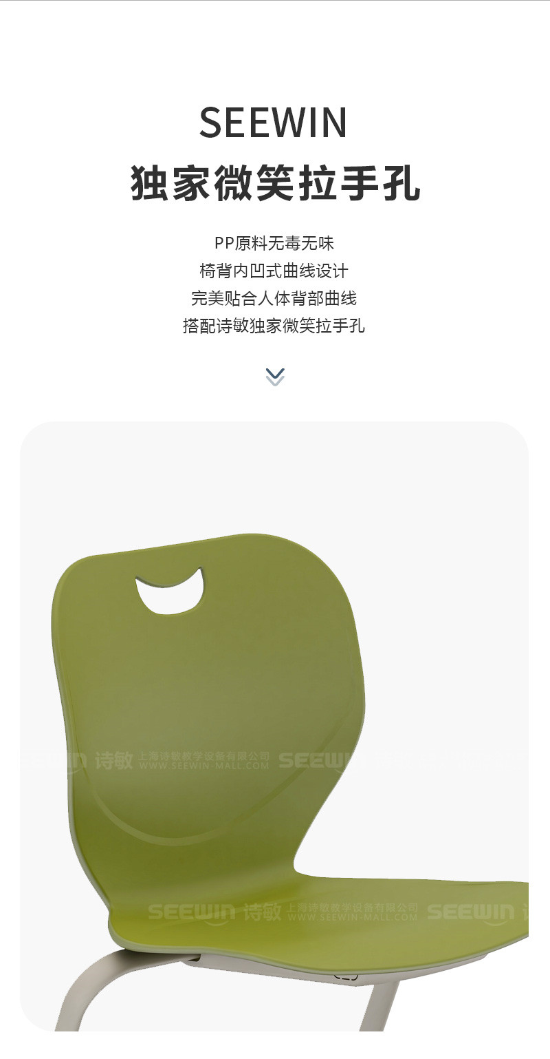 SEEWIN詩敏學(xué)校家具格物系列學(xué)生課椅采用ABS注塑一次成型;