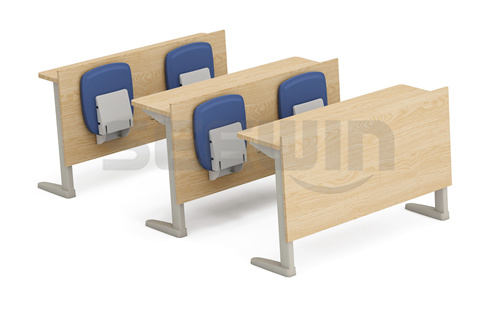 SEEWIN詩敏教學(xué)設(shè)備明治系列階梯教室排桌椅桌面采用E0級MFC板,倒圓角設(shè)計(jì),確保不割手,鋼腳支撐,承重穩(wěn)固,課椅采用靜音阻尼,讓學(xué)生靜享學(xué)習(xí)環(huán)境。