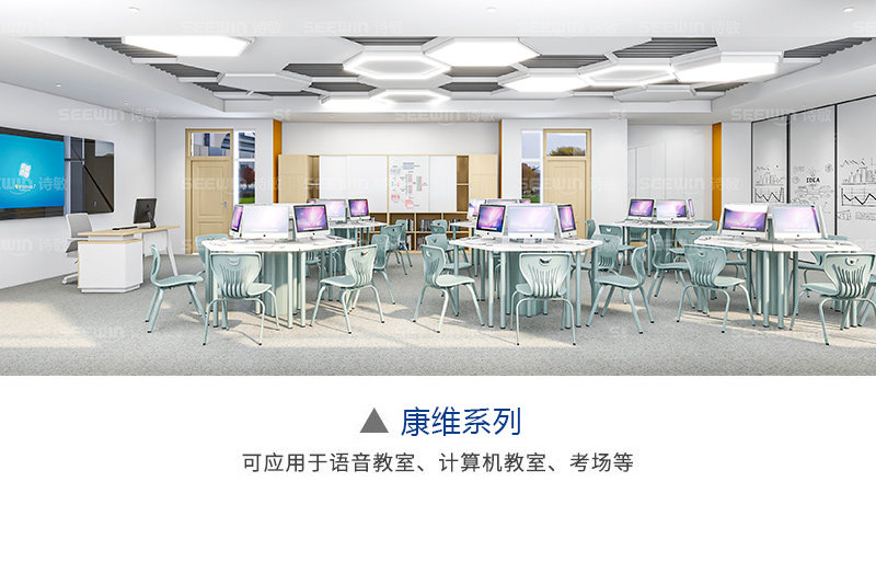康維電腦桌專業課教室家具-計算機室書法室音樂室繪畫室多媒體教室家具-SEEWIN詩敏學校家具上海詩敏教學設備有限公司|教學設備-科創教室-未來教室-無人機教室