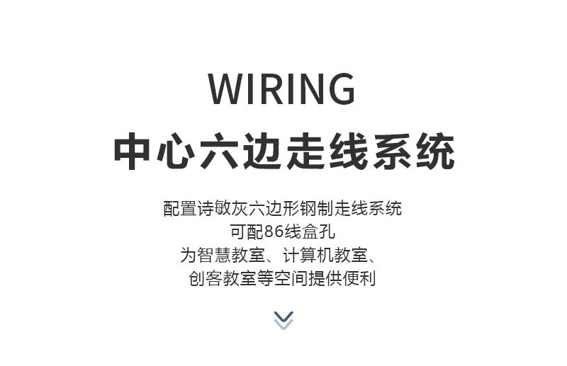 SEEWIN詩敏教學設備康維系列計算機教室電腦桌產品桌面采用E0 級MFC 板,環保安全,桌面配置插線孔,方便收納。優質鋼架烤漆支架,穩定耐用,可組合拼接,可搭配22寸以下電腦顯示屏使用,適合計算機教室使用。