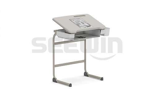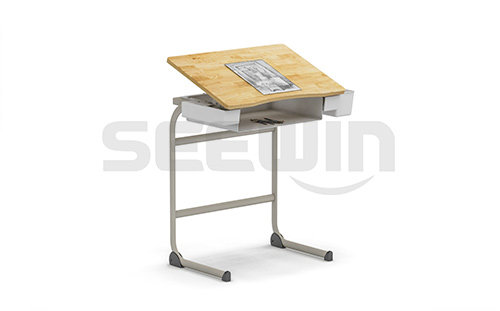 SEEWIN詩敏教學設備梵高系列美術教室美術桌桌面可選 ABS、橡膠木指接板,采用人體工程學設計,無需支架,0-80°桌面傾斜任意可調,使用緩沖液壓五金件安全使用不夾手。側邊可選筆槽配件,拆卸方便,輕便使用。