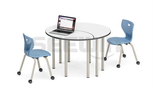 SEEWIN詩敏教學(xué)設(shè)備弗萊徹系列智慧教室組合桌采用 E0 級 MFC 板,選材健康安全。優(yōu)質(zhì)鋼架焊接,堅固耐用。以小組為單位活動的課程增多,組合桌椅增加互動性,體現(xiàn)小組成員的團結(jié)性及個體的獨立性。獨立使用和組合使用,帶有升降功能,可根據(jù)身高調(diào)節(jié)。