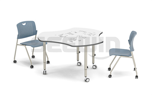 SEEWIN詩敏教學設備丹佛系列智慧教室可書寫桌桌面采用 E0 級 MDF 板,PU 封邊,穩定耐用。桌面可書寫材質,可供學生上課、討論書寫涂改。適合創客教室、小組討論活動等課程使用。