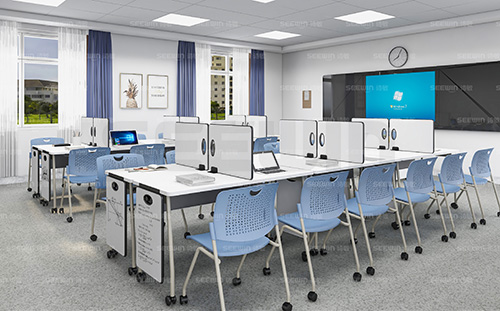 SEEWIN詩敏教學設備奧林匹克系列人工智能教室產品臺面采用橡膠木指接板,選材健康安全。雙層設計,提供更多儲物收納空間,更加穩固耐用。適用于人工智能等功能教室。