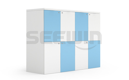 SEEWIN詩敏教學設備里斯系列書包柜產品臺面采用 E0 級 MFC 板 , 健康環保。柜門配置安全鎖具,既有收納各種教學用具,又方便取用。適用于教室、走廊、圖書館等場所。