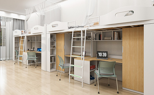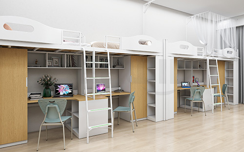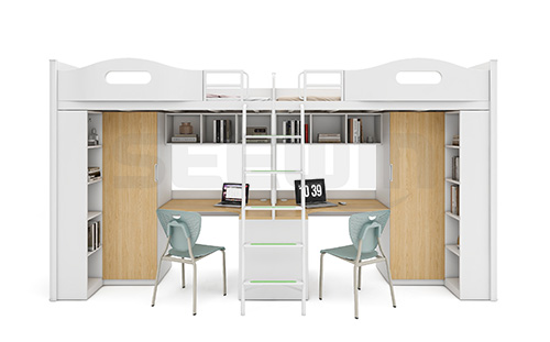 SEEWIN詩敏教學設備海提系列宿舍床產品采用 E0 級 MFC 板,搭配詩敏專利床框架。床下配置獨立式收納空間。給學生更多的私人空間。邊緣全圓角處理,精心呵護孩子健康安全。