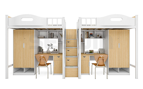 SEEWIN詩敏教學設備海維系列宿舍床產品采用環保型 E0 級 MFC 板,選用優質 DTC 五金配件。棱角倒圓處理,弧形轉角防止磕碰,邊緣光滑不刺手。床側帶有儲物空間,床底可選配抽屜,進一步滿足儲物需要。柔和配色可供選擇,陪伴學生安心入睡。