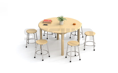 SEEWIN詩敏教學設備米蘭系列陶藝教室陶藝桌產品采用橡膠木指接板,實木桌腳造型簡潔大方,堅固耐用,適合木工、陶藝等專業教室使用。