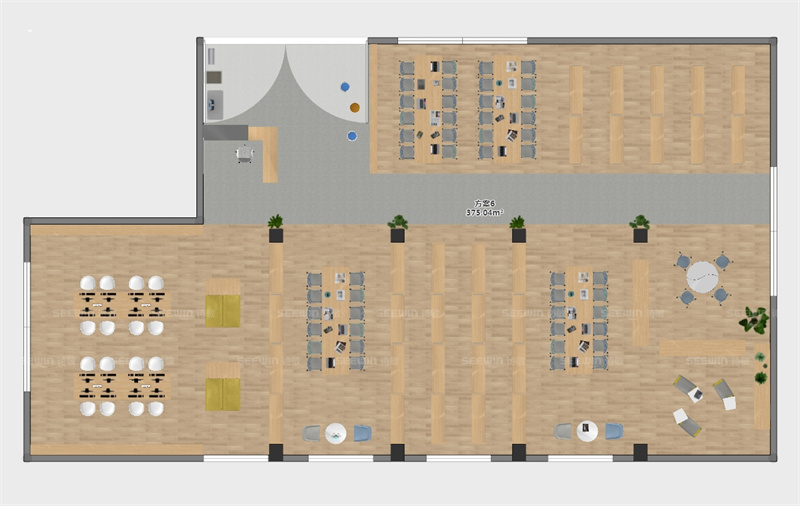 圖書館方案六-375㎡平面圖圖書館空間設計-閱覽區-圖書架-SEEWIN詩敏學校圖書館家具廠家上海詩敏教學設備有限公司|教學設備-科創教室-未來教室-無人機教室